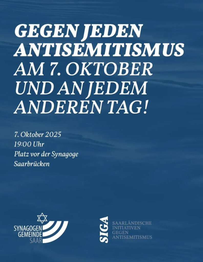 Deshalb rufen wir zur Kundgebung am 7. Oktober 2025 um 19 Uhr auf dem Platz vor der Synagoge in Saarbrücken auf. Wir stehen an der Seite Israels, an der Seite der demokratischen Bewegungen für eine Zukunft ohne Krieg und Terror in der Region, an der Seite der Geiseln und ihrer Angehörigen, und an der Seite von Jüdinnen und Juden. Im Saarland, in Deutschland und weltweit.